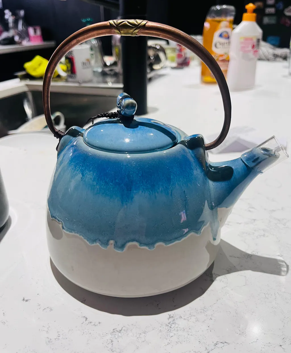 All Pottery For The Planet handmade teapots are made of ceramic and must be handled with care. We high-fire all of our pottery pieces for added durability, however, ceramic will crack if knocked or dropped.  Placing a ceramic teapot directly on a stovetop is not suggested. You can pour boiling water into your teapot however we do not recommend heating your teapot on the stove. Ceramic is a porous material, rendering it susceptible to cracking or shattering when exposed to direct heat (flame or electric).